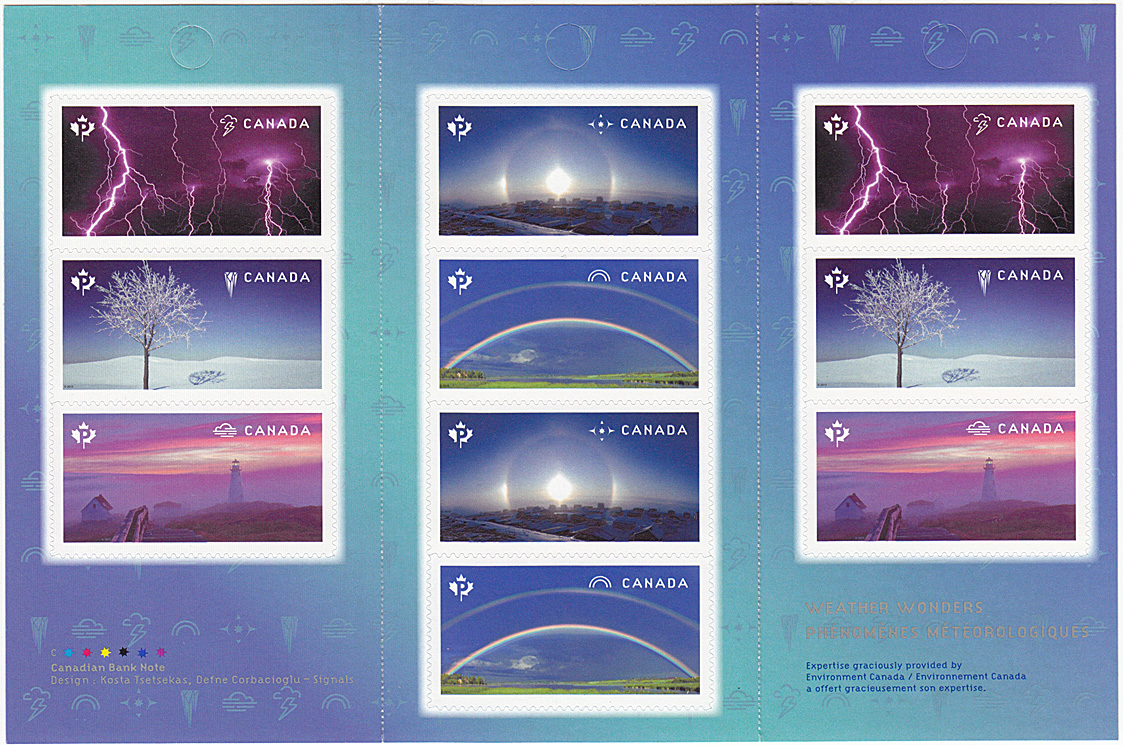 This is part of four stamps series with two halo stamps. Other two stamps have clouds. FDC (First Day Cover) of this series has an sun pillar.