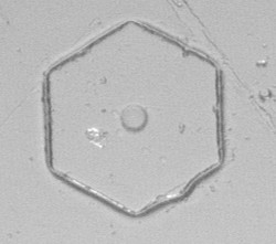 Kuvassa näkyvät pienet pisteet ovat jääkiteiden jälkiä lakassa. Suurin ongelma replikoiden kanssa on se, että "jääkiteet" replikassa ovat vain jääkiteiden jälkiä. Voit yrittää suihkuttaa lakkaa levylle myös sen jälkeen kun näyte on otettu. Tällöin lakkakerrosten väliin jäävät kiteiden kolmiulotteinen muoto saattaa säilyä replikassa. Tämäkään tekniikka ei poista sitä seikkaa että replikoissa ei säily jääkiteiden sisärakenteita.
