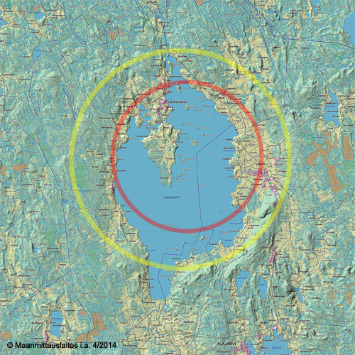 KraatteriLappajärven kraatteri on suurin ja parhaiten säilynyt Suomen törmäyskraattereista. Olkoonkin että sitä ei maastosta erota yhtä hyvin kuin esimerkiksi Söderfjärdeniä. Se on toistaiseksi myös nuorin löytynyt kraatteri. Jälkimmäinen titteli saattaa vielä karata Lappajärveltä jos joku pieni ja nuori kraatteri joskus löytyy. On jokseenkin epätodennäköistä, mutta ei mahdotonta, että Lappajärveä suurempi kraatteri vielä piilottelisi Suomen kallioperässä. Keurusselän on tosin epäilty olevan vieläkin suurempi, mutta konkreettista todistetta tälle ei ole esitetty. Tosin vertailun vuoksi olen sekä ylläolevaan karttaan että Keurusselän karttaan piirtänyt keltaisella renkaalla ns. suurimman mahdollisen koon renkaan. Keurusselällä se on 22 km ja Lappajärvellä 21 km. Käytännössä ne ovat yhtä suuria koska on jossan määrin makuasia mihin sen renkaan sijoittaa. Täytyy muistaa että Keurusselkä on lähes 1100 miljoonaa vuotta Lappajärveä vanhempi ja pohjia myöten pois kulunut kraatteri, joten järkevä vertailu on vaikeaa. Lappajärven kraatteriin on tehty 4 kairausta. Ne paljastavat että törmäyssyntyisiä kiviä on yli 250 metrin paksuinen kerros. Paikoin sueviitin ja breksioiden päällä on useita kymmeniä metrejä maaperää. Kraatterin kuopan reunoilla on törmäyksen yhteydessä hautautuneita törmäyskohdalla olleita mikrofossiilipitoisia sedimenttikiviä. Alajärven hiekkakuopilta on lisäksi löytynyt muutamia fossiilipitoisia ordoviikkikautisia kalkkikivikappaleita. Ilmeisesti sueviittia ympäröivässä grabenissa on säilynyt myös ainakin ordoviikkikautisia sedimenttejä. Törmäyksessä syntyneitä kiviäLappajärveltä löytyy kaikkia törmäyskraattereille ominaisia kiviä ja shokkimetamorfoosin merkkejä. Viimeisin löytö tehtiin tammikuussa 1998 kun GTK ilmoitti törmäystimanttien löytymisestä venäläisten kanssa tehdyissä tutkimuksissa. Kartassa punaisella ympyrällä on merkattu impaktiittien levinneisyys kraatterissa.Punaisen ympyrän ulkoreunassa on kilometrin levyinen kaista breksioita, sitten sueviittista kiveä ja Kärnänsaaren pohjoisosassa törmäyssulaa eli tuttavallisemmin kärnäiittiä. Lappajärveltä löytyy Suomen oloissa harvinaisuus eli törmäyssulakiveä kalliopaljastumassa. Paljastumia on kolmessa paikassa Kärnänsaaren pohjoisrannan tuntumassa. Itse asiassa kiveä on louhittu ja esimerkiksi kylpylä Kivitipun lattialaatat ovatkin Kärnänsaaren uudesta louhoksesta louhittua kärnäiittiä eli sen tippuneen kiven synnyttämää törmäyssulakiveä. Kärnäiitti on tarkemmin määriteltynä sulamatriksi breksiaa. Siinä on sulaneen kivimassan matriksin seassa sulamattomia tai osittain sulaneita kivilaji ja mineraaliklasteja törmäyskohdan kallioperästä. Kärnäiitti on varsin tiivistä ja kovaa kiveä ja siitä on tehty Kivitipun lattialaattojen lisäksi myös koruja. Lappajärveltä löytyy myös sueviittiksi kutsuttua kiveä. Sueviitti on törmäyksessä syntynyttä kivimurskaa jossa on jonkin verran kivisulan kappaleita (yli 5%). Varsinainen sueviitti on kivimurskaa joka kävi törmäyksen jälkeen ilmassa. Lisäksi joskus erotellaan sueviittimainen breksia, joka on sulapitoista liittistä breksiaa. Siinä on sulaa myös yli 5%, mutta kivi ei ole käynyt ilmassa vaan on pysynyt kraatterikuopassa. Tätä sueviittia esiintyy paitsi törmäyssulan ympärillä, myös sen alapuolella. Impaktibreksia eli liittinen breksia joka on syntynyt törmäyksessä on kolmas yleinen törmäyksissä syntyvä kivilaji. Siinäkin voi olla joitain sulapisaroita, mutta korkeintaan 5% tai kiveä pitää kutsua sueviitiksi. Näissä sulapitoisuusrajoista ja muutenkin törmäyskivien luokitteluissa ei oikein olla päästy sopuun. Kansainvälinen suositus niistä on kyllä olemassa. Lappajärveltä on löydetty myös pirstekartioita. Ne ovat kuitenkin hyvin harvinaisia ja esiintyvät lähinnä breksioiden kivilajiklasteissa. Lappajärven ikäLappajärvellä ikämäärityksiä on tehty useita. Kaikki tehdyt ajoitukset osoittavat että törmäys tapahtui noin 75 Ma sitten. Viimeisin 40Ar/39Ar -iänmääritys antoi tarkimman ikähaarukan törmäykselle: 76,2 ±0,29 Ma (Schmieder 2013). Edellinen U-Pb ajoitus sijoitti törmäyksen 73,3 ±5,3 Ma taakse (Mänttäri 2001). Schmiederin ryhmän (2013) tekemä iänmääritys oli hyvin tarkka. Heidän eri kivistä tekemänsä ajoituksensa osoittavat että törmäyksen jälkeisen hydrotermisen toiminta jatkui 0,6 - 1,6 miljoonaa vuotta. Hydrotermisen toiminnan merkkejä on nähtävissä kraatterin kivissäkin. Kraatterin eteläpuolella olevan Alajärven Hietakankaan soramontuilta löytyy harvakseltaan mm. korukiviksi kelpaavaa sinistä kalsedonia ja mikrokiteistä kvartsia. Lähteitä: