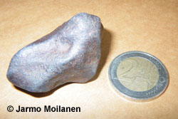 HYVÄ KUVA METEORIITTIEHDOKKAASTA (kuvan kivi on aito meteoriitti) Kuva on otettu alle 200 euron tavanomaisella digitaalipokkarilla. Kuvaus on tehty sivumyötäisessä päivänvalossa pahvinlevyn päällä. Kolikko on mittakaavana. Kuvasta on kuvankäsittelyohjelmalla rajattu turhat tyhjät reunukset pois. Tarkennus kohdalleenYllättävän usein lähetetyt kuvat ovat epätarkkoja. Epätarkka tarkoittaa että kuvan yksityiskohdat ovat suttuisia. Terävä reuna ei näy terävänä vaan sumeana. Sellaisesta kuvasta ei näe paljoa. Korkeintaan kohteen värisävyn. HUONO Kuva on hiukan epätarkka ja yksityiskohdat ovat suttuisia. Vanhoissa filmipokkareissa ei ollut mahdollisuutta kuvata kovin läheltä. Niillä sai teräviä kuvia vain 1-2 metrin päästä. Ne eivät sovellu kovin pienten kohteiden kuvaamiseen. Sama pätee useisiin digitaalikameroihin. Kuitenkin yhä useammassa digitaalikamerassa on jo ns. lähi- tai jopa makrokuvaustoiminto. Toiminnon symbolina käytetään usein kukan kuvaa. Makrokuvauksella pystyy ottamaan teräviä kuvia jopa ihan senttien päästä. Yllä oleva kuvapari on otettu samalta etäisyydeltä samalla digitaalikameralla. Alemmassa kuvassa on ollut päällä ns. normaaliohjelma ja ylemmässä tarkassa kuvassa on käytetty makrokuvausohjelmaa. Kuvan rajaaminenKuva kannattaa rajata tiiviisti jotta kuvaan ei jää turhaa tyhjää tilaa. Toki jos kameralla ei saa terävää kuvaa läheltä, niin silloin on tyytyminen huonoon rajaukseen. Muista että kuvan terävyys on paljon tärkeämpi kuin kuvan rajaus! Sähköpostia varten kuvasta voi leikata ylimääräinen tyhjä pois jos osaa käyttää kuvankäsittelyohjelmaa tietokoneella. Joissain digitaalikameroista rajaustoiminto löytyy sisäänrakennettuna toimintona. HUONO, MUTTA KELPAA